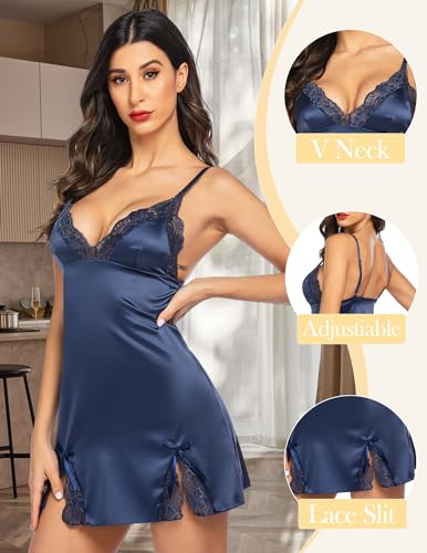 Avidlove Lingerie for Women Satin Lace Mini Dress V Neck Nightgown Sexy Boudoir Outfits