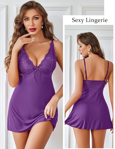 Avidlove Lingerie for Women Sexy Babydoll Chemise Nightgown Lace Strap Nightwear Modal Sleep Dress