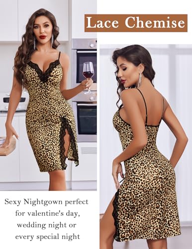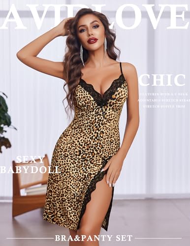 Avidlove Lingerie for Women Sexy Lace Nightgowns Side Slit Sleepwear V Neck Babydoll Chemise