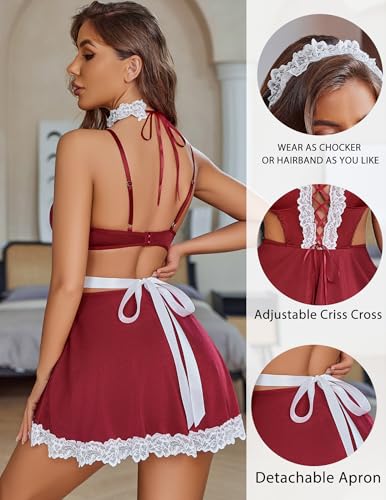 Avidlove Lingerie For Women Sexy Maid Dress French Cosplay Babydoll Lingerie Halloween Costumes Outfits(4Pack) S-XXL