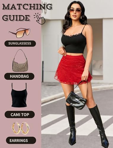Avidlove Mini Skirts for Women Sexy Lace Skirt A-Line Ruched Double Layer Short Going Out Skirt
