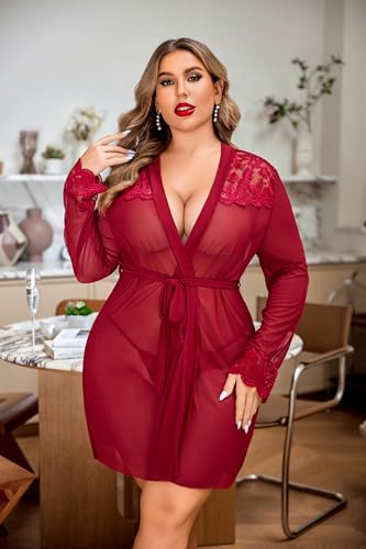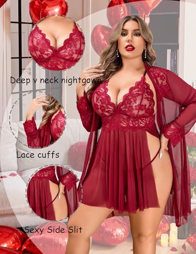 Avidlove Plus Size Lingerie Sexy Lingerie Set Women’s Exotic Nightgowns Lace Chemise Lingerie Side Slit Nightdress