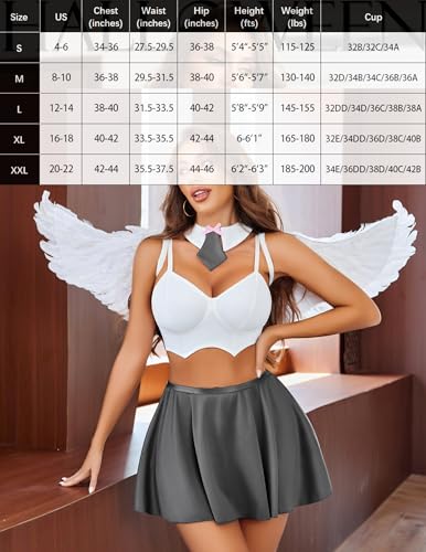 Avidlove Schoolgirl Lingerie for Women 4 Pieces Roleplay Lingerie Sets Student Costume Outfit with Mini Skirt