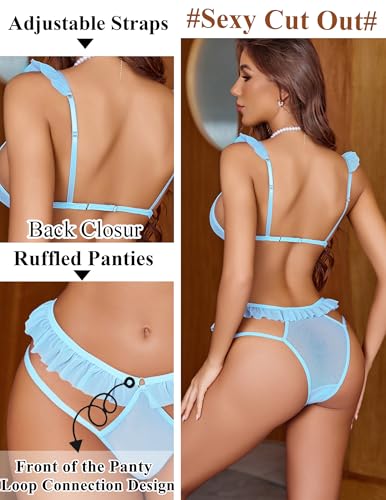 Avidlove Sexy Bra and Panty for Women Cut Out Lingerie Sets 2 Piece Mesh Triangle Bra Ruffle Panties