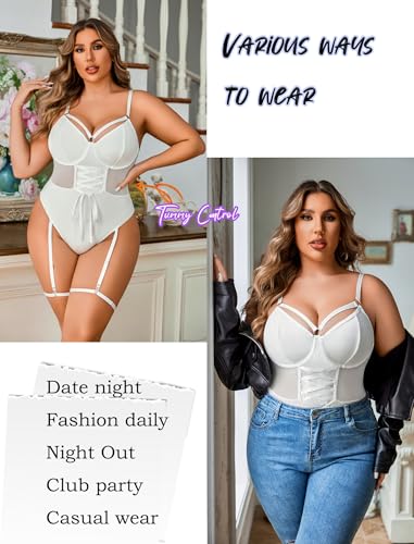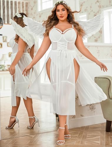 Avidlove Sexy Plus Size Lingerie Set for Women Sexy Bodysuit with High Slit dress and Garter Belt L-5XL