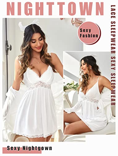Avidlove Women Chemise Night Gown Lace Modal Sleepwear V-Neck Full Slip Babydoll Lingerie Sexy Nightgowns
