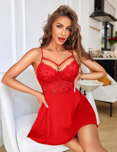 Avidlove Women Lingerie Sexy Nightgown Spaghetti Strap Modal Sleepwear Side Slit Babydoll Chemise
