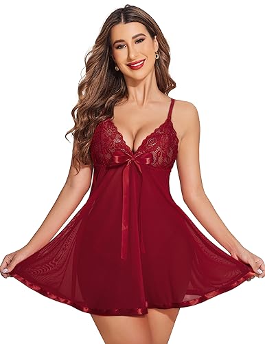 Avidlove Women’s Lingerie Lace Babydoll Strap Chemise Mesh Sleepwear Outfits