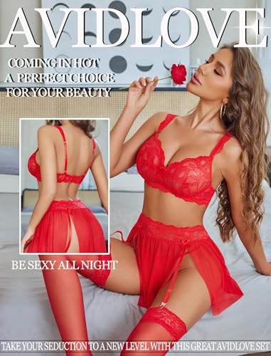 Avidlove Women’s Lingerie Set 3 Piece Garter Lingerie Lace Bra and Skirt Set S-XXL