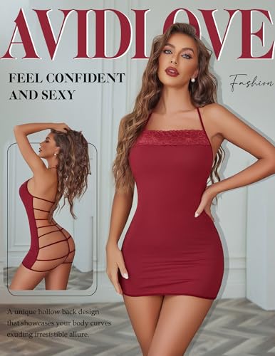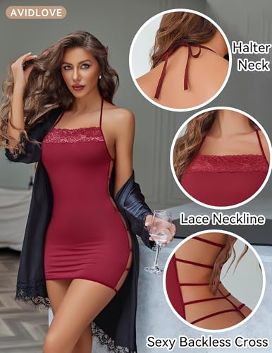 Avidlove Women’s Lingerie Sexy Bodycon Nightgown Lace Neckline Babydoll Chemise Cotton Sleepwear Halter Dress Slip S-XXL
