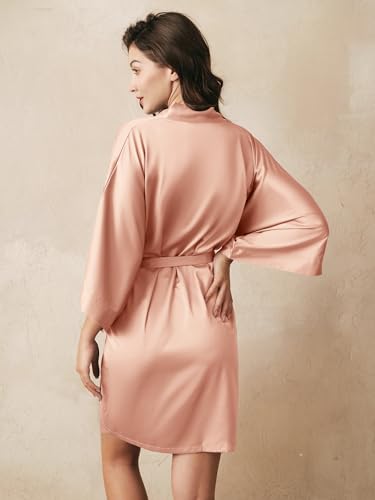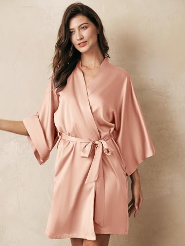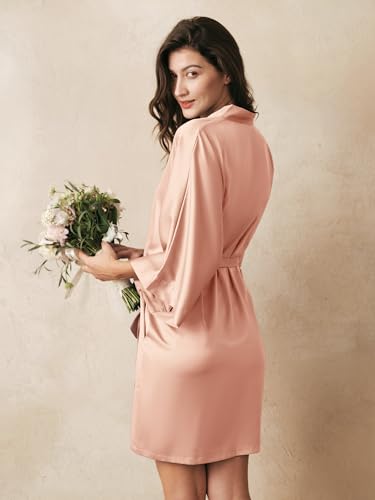 AW BRIDAL Silk Robes for Women, Short Bridesmaid Robes for Bridal Wedding Party, Bride Satin Bathrobe with Long Sleeve