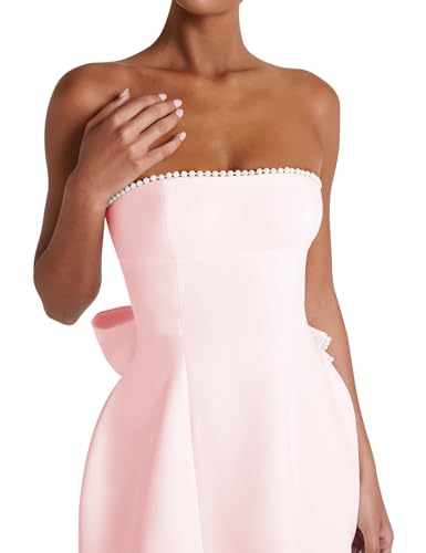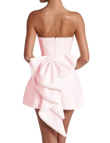 Azhong Women’s Summer Sexy Strapless A-Line Sleeveless Mini Dress Off The Shoulder Backless Cute Pearl Bow Dress