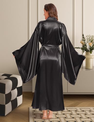 BATHGOWN Women’s Silk Kimono Long Robe Satin Bridesmaid Wedding Sleepwear Beach Blouses Bikini Cover Up Plus Size