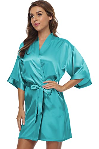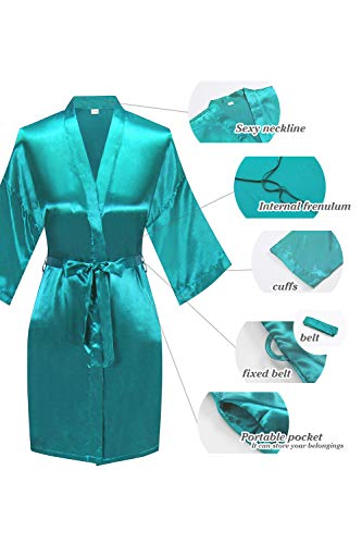 BeingYoung Women’s Short Pure Silky Robes Satin Kimono Robe Bride Bridesmaid Wedding Party Robes with Pockets Sleepwear
