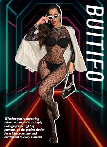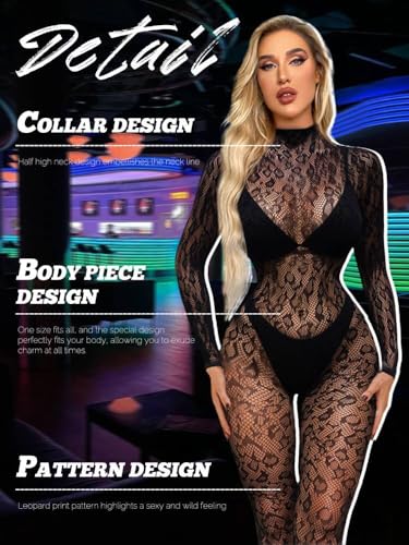 Buitifo Woman Lingerie Bodysuit Fishnet Stocking Leopard Full Body Jumpsuit Rave Outfits