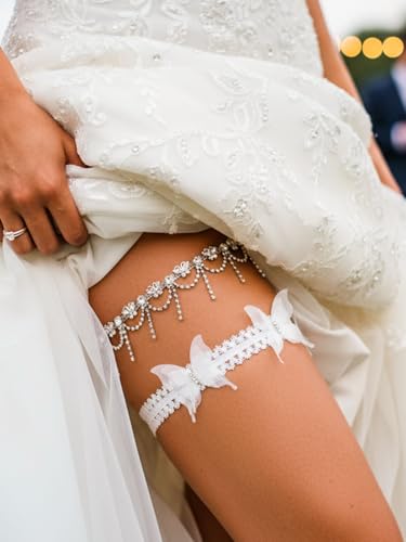 Campsis Wedding Garter for Bride, Rhinestone Thigh Garter Belt, Butterfly Leg Belt for Women