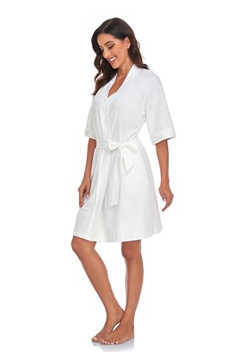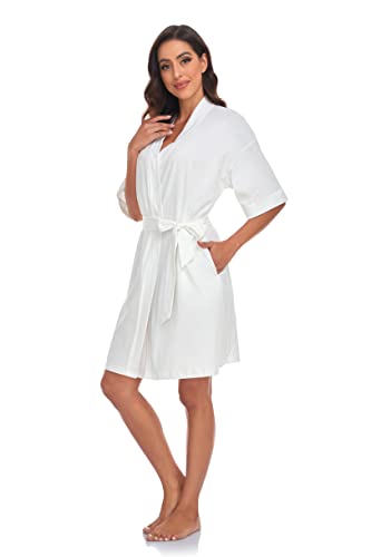 COLORFULLEAF Women’s 100% Cotton Robes Summer Short Sleeve Bathrobe Knee Length Sleepwear with Pockets