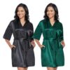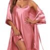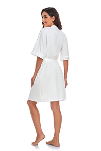 Women’s Satin Robe Short Lace Trim Silk Kimono Bride Bridesmaids Robe with 3/4 Sleeve Sexy Sleepwear