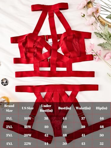 Curvy Lady’s Strappy Lingerie For Women, Plus Size Exotic Garter Thong, BBW Halter Gifts For Him 3 Piece Set