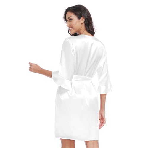 DandyChic Women’s Satin Robe Short Ruffle Robes for Women Kimono Bathrobe Bride Bridesmaid Sexy Sleepwear with Pockets
