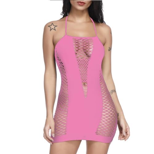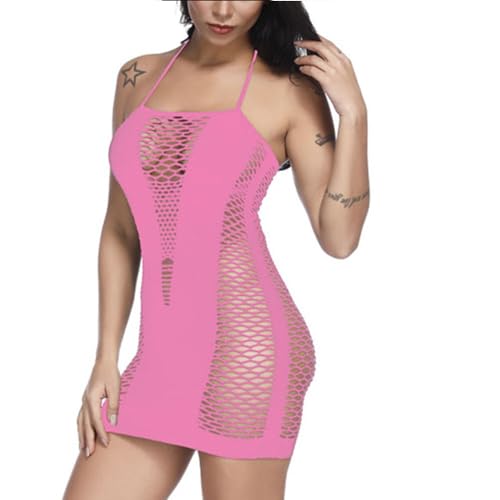 DITSONEO Womens Lingerie Fishnet Dress Mesh Chemise Babydoll Sexy See Through Nightwear Sleepwear for Women