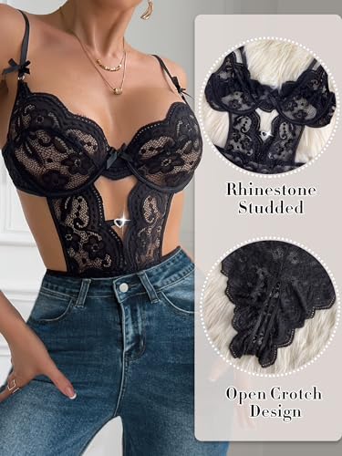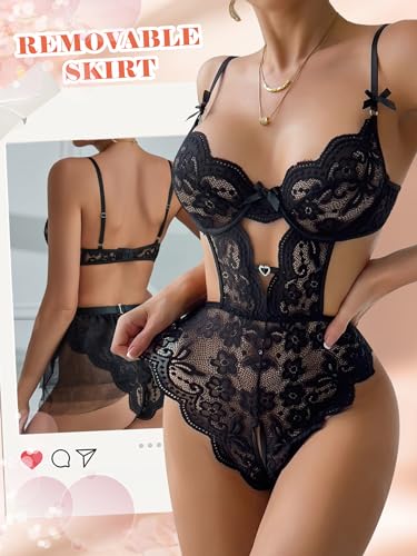 Dlsave Women Sexy Lingerie Set Lace Teddy Lingerie Detachable Mini Skirt Sets
