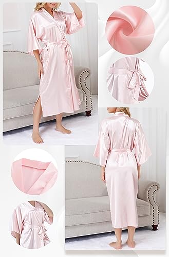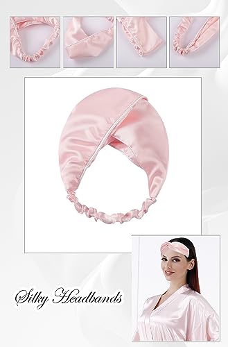 DOLOS Satin Robe for Women Long Floral Kimono Robes Lightweight Bridesmaid Robes Silky Bathrobe with Eye Mask Headband