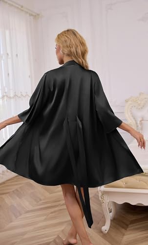 Drtope Women’s Satin Robe Valentines Lingerie for Women Kimono Bathrobe Short Ruffle Belted Robes Bridesmaids Sleepwear