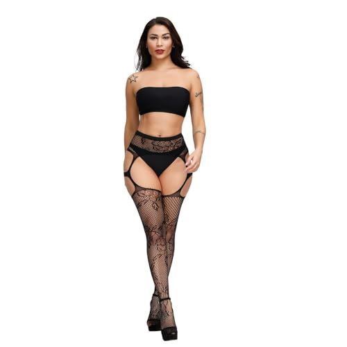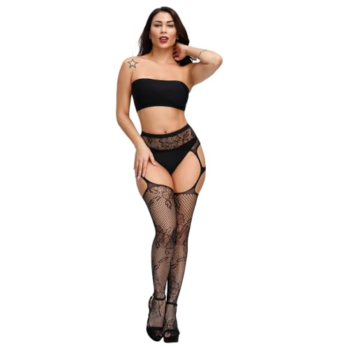 E-Laurels Garter Stockings For Women Thigh High Fishnet Stockings Suspender Pantyhose (Black,1525)
