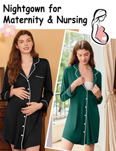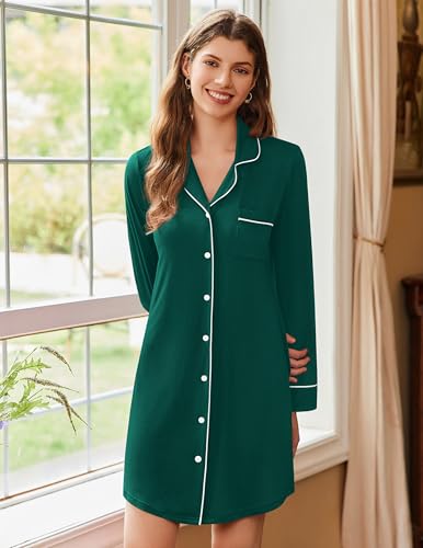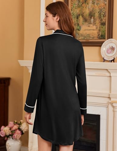 Ekouaer 2 Pack Nightgowns for Women Long Sleeve Night Shirt Button Down Sleep Shirt V-Neck Sleep Dress Pajama Sleepwear