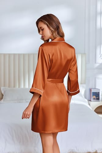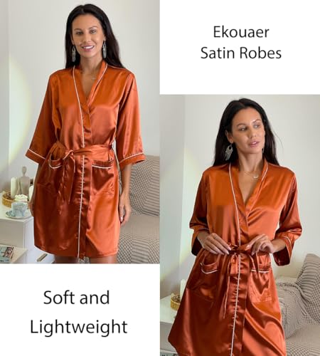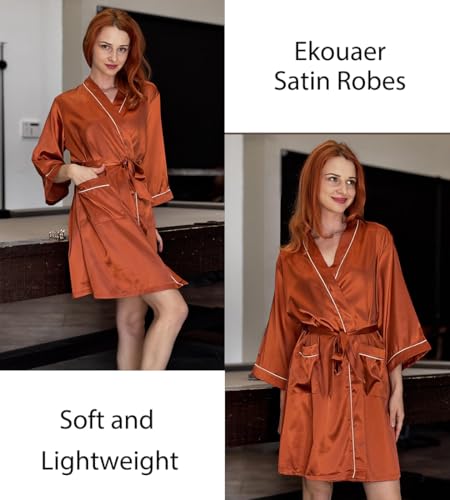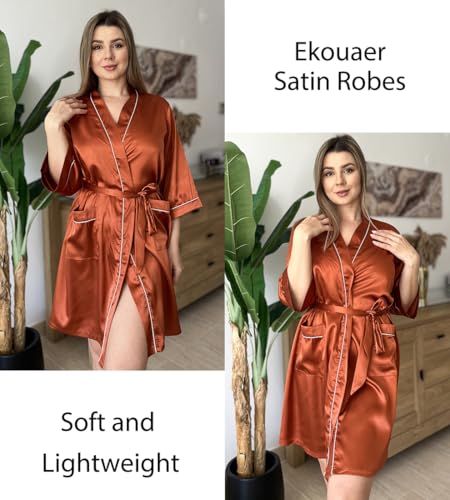 Ekouaer Silky Robes for Women Satin Knee Length Bride Bridesmaid Wedding Party Bathrobe Lightweight Sleepwear with Pockets