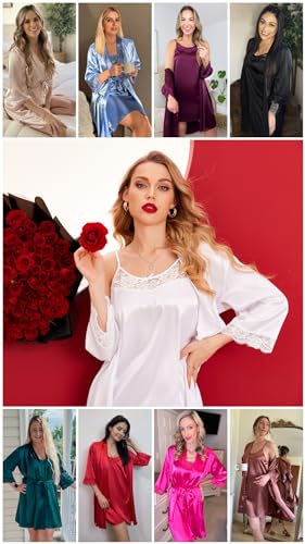 Ekouaer Sleepwear Women’s Satin Nightgown with Robes Set 2 Piece Sexy Lace Cami Nightwear