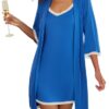 Ekouaer Women’s Nightgown and Robe Set 3/4 Sleeves Robes 2 Piece Bathrobe Set V-neck Lace Cami Sleepwear with Pockets S-2XL