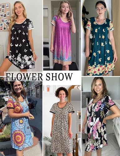 Ekouaer Women’s Nightgown Short Sleeve Sleepwear Comfy Sleepshirts Pleated Scoopneck Nightshirt S-XXXL