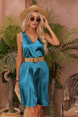 Ekouaer Women’s Satin Silk Nightgown V Neck Nightie Tank Sleepshirt Sleeveless Summer Dress Comfy Loungewear