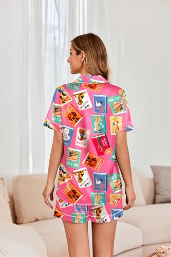 Ekouaer Womens Satin Silk Pajamas Set Short Sleeve Sleepwear Button Down Top and Shorts Loungewear 2 Piece Pjs Set S-XXL