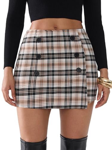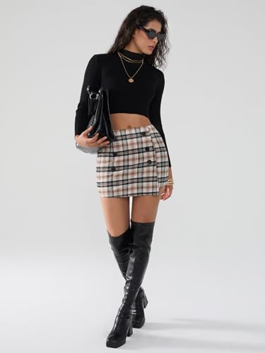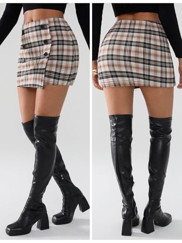 EXLURA Womens Fall Plaid Bodycon Mini Skirts High Elastic Wasit Short Skirt Trendy Winter Sexy Y2K Fashion Outfit