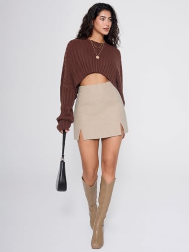 EXLURA Women’s Fashion Faux Wool Mini Skirt High Waisted Y2K Trendy Side Slit Tweed Plaid Skirts 2025 Fall Winter Outfits
