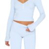 Ezbelle Lounge Set Women’s V Neck Pajama Button Shirt Two Piece Knit Long Sleeve Pjs Short Cozy Fall Outfits 2026