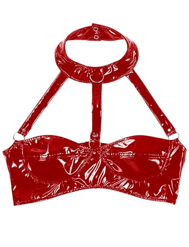 FEOYA Women’s Black Latex Outfit Patent Leather Bras Party Club Cropped Tops
