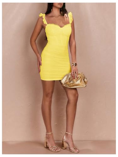 Floerns Women’s Lace Trim Sweetheart Neck Ruched Corset Dress Sleeveless Mini Pencil Dresses