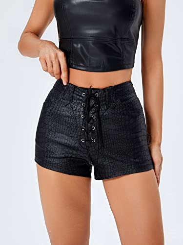 Floerns Women’s Y2K Sexy High Waisted Faux Leather Shorts Drawstring Lace Up Festival Rave Shorts