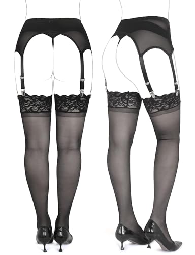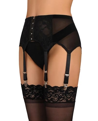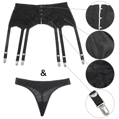 GARGALA Garter Belt for Thigh High Stockings, Women’s High Waist Suspender and Thong Set 6 Duck Clips