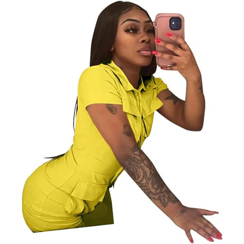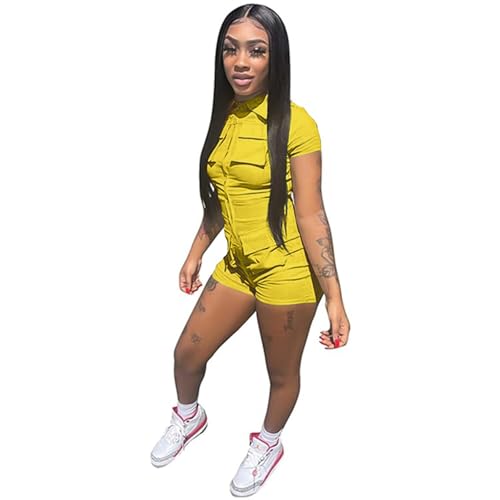 Halfword Womens Sexy Bodycon Romper Zip Up Solid Color Short Pants One Piece Jumpsuits Clubwear with Multiple Pockets