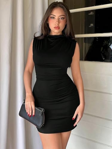 HBQ Women’s Ruched Bodycon Dress Summer Sleeveless Sexy Cocktail Club Party Mini Dresses