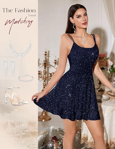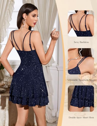 HomRain Women’s Spaghetti Straps Backless Dresses Sparkly Short Dress for Homecoming Cocktail Dress for Wedding Guest