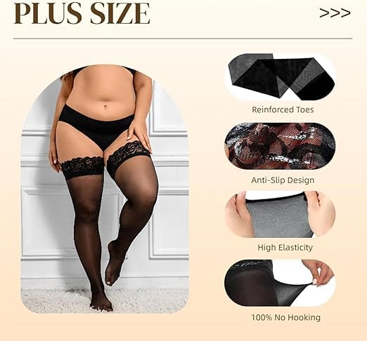 Embrace comfort and elegance with our Plus Size Thigh High Stockings—where fashion meets function for every curve.