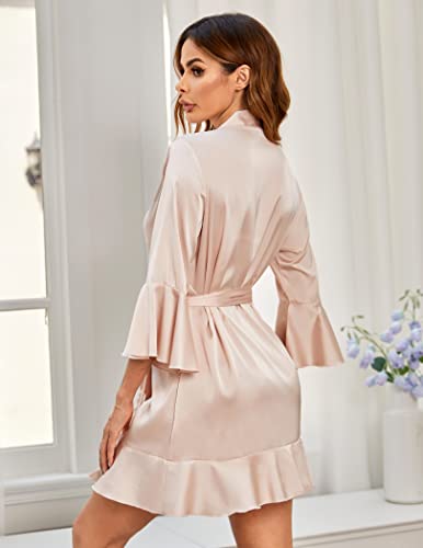 HOTOUCH Women’s Satin Robe Pure Color Short Kimono Robes Ruffle Hem Oblique V-Neck Bridesmaid Wedding Party Bathrobes