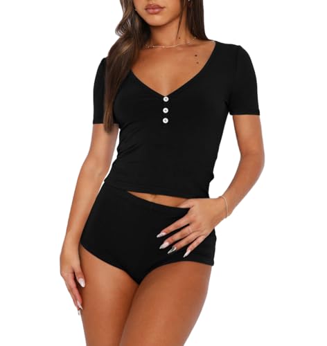 INFITTY Pajamas for Women Set Short Sleeve Button Down Sexy Pj Sets Sleepwear Soft Pjs Lounge Sets