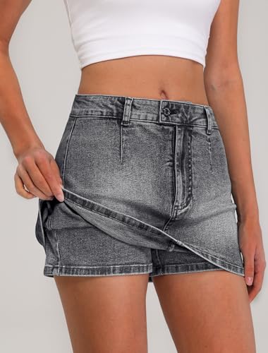 IWD Denim Mini Skirt for Women Low Waisted Jean Micro Skort with Shorts Stretch Casual Jean Skirt